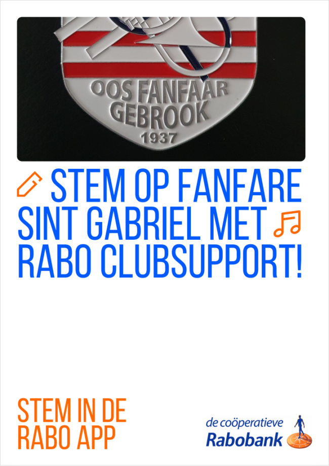 Vanaf maandag 1 september kunnen we weer stemmen op de fanfare voor de RABO Club Support Aktie . We willen dit jaar noodzakelijk onderhoud laten doen aan ons instrumentarium. Uw stem is heel welkom. Bedankt. Stem nu !